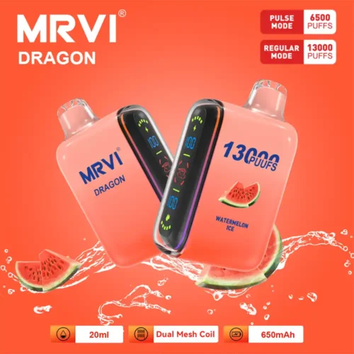 The MRVI DRAGON 13000 Puffs Disposable Vape is the perfect choice for vapers seeking extended enjoyment, exceptional flavor, and superior performance. With a substantial 20ml e-liquid capacity and a powerful 650mAh rechargeable battery, this device ensures you get the most out of each vape, offering long-lasting satisfaction. Equipped with dual mesh coil technology, the MRVI DRAGON produces smooth, rich, and flavorful vapor with every puff.